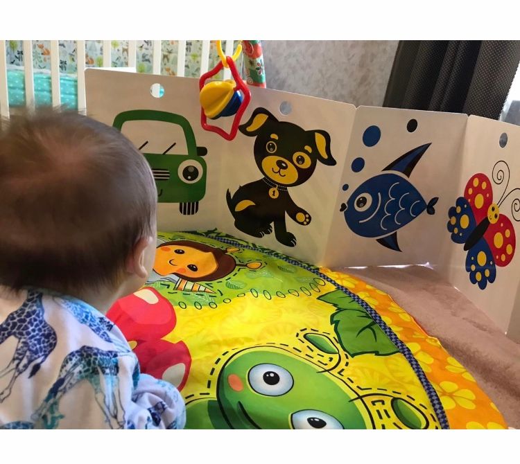 2. Картинки (1+ месяц) очень выручали в первое время вместе с ковриком, пик был в 2-3 месяца, сейчас они поднадоели ему, и такой интерес уже не вызывают. Заказывала на велдбериес