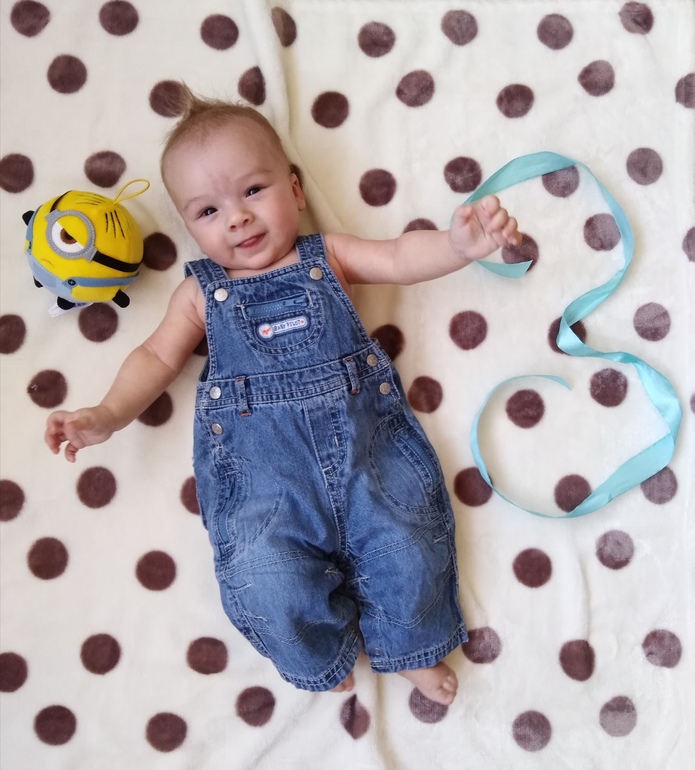 Дочка такая была в 7 месяцев😁. Заказала ему в инстаграм комбез-трансформер, а там шапка в комплекте. Шапка мала оказалась🤷♀️Головастый пацан. Сравнила с дочкиными шапками-ей бы эта шапка в год как раз была! Такие вот разные детки. Он вообще какой то прям большой на мой взгляд.