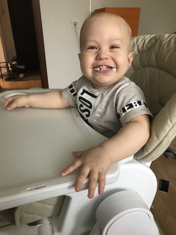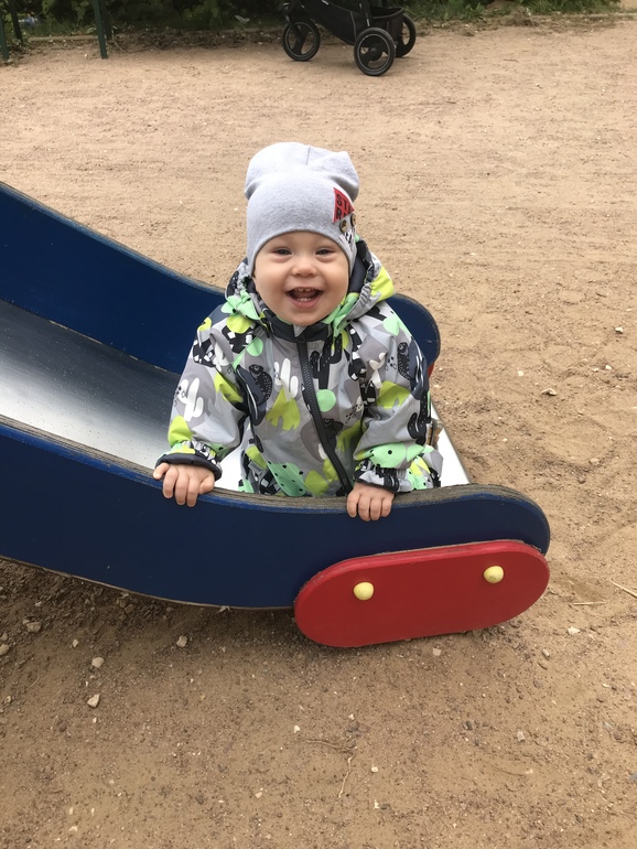 Все так же ходит вдоль опоры. Может забыться, оторваться и постоять без опоры несколько секунд) На улице иногда выставляет ногу с четверенек чтобы встать, но пока не часто. Может вскарабкаться на небольшую горку, с легкой подстраховкой. Ест неплохо, но стал почему-то часто выплёвывать еду. Вроде рот откроет, только на язык попадёт - выдаёт обратно. Связывала это с частыми перекусами фруктовыми паучами, пока убрала на время их, но лучше не стало. Фаворит месяца - рыба)