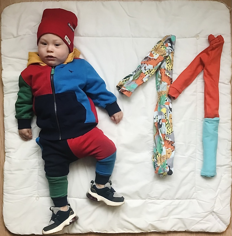 По основным моментам: прошёл какой-то нереальный скачок роста! Вырос изо всей одежды и обуви, прям за неделю буквально. Из особо радующих появившихся умелок - научился нанизывать колечки на пирамидку; не только разбирает формочки из сортера, но и складывает их в него, а ещё по настроению может попытаться повставлять в нужные отверстия; появился указательный жест! Не на все подряд, но вот дня 3 уже тыкает на то, что просит, или в сторону того, о чем спрашиваешь его. Прогресс в мелкой моторике, может открыть защелку, потянуть/нажать пальчиками. Начал делиться, как едой так и игрушками. Из речи пока так же «Мама», «амам/мнямням". Проскальзывает «Адя» - кличка собаки, «мумуму» - это так он повторяет за мной, когда я ему запрещаю куда-то лезть и говорю «ну-ну-ну!». «Папа» все чаще стало появляться.