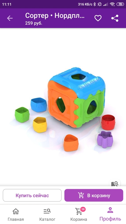 Если самый первый сортер, то можно с одной дыркой, чтобы просто понять принцип. Брала вот такой