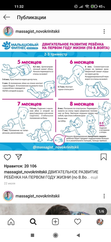 Мы в месяц держали голову лежа на животе, тут у нас по-другому. Может ленится, не знаю. Пока ползает по комнате проблем нет 😄 думаю и я ищу проблему зря. Сын любит когда под подмышки держим и он будет ходит/прыгает. Смеётся во всю)