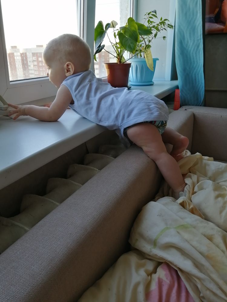 В 6 мес 23 дня пополз по-пластунски, через 3 дня стал вставать на четвереньки и пытаться ползти на них, но плюхался на пузо. Пытался садиться из позы русалки. Начало восьмого месяца и Ванюша стал вставать на колени сначала в ванночке, потом в кроватке, на диване - везде. С четверенек садится и опирается на обе ручки. В 7 мес 20 дней стал вставать на ноги, первый раз получилось на диване. Теперь встает везде, очень любит у зеркала)