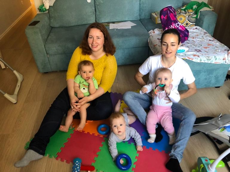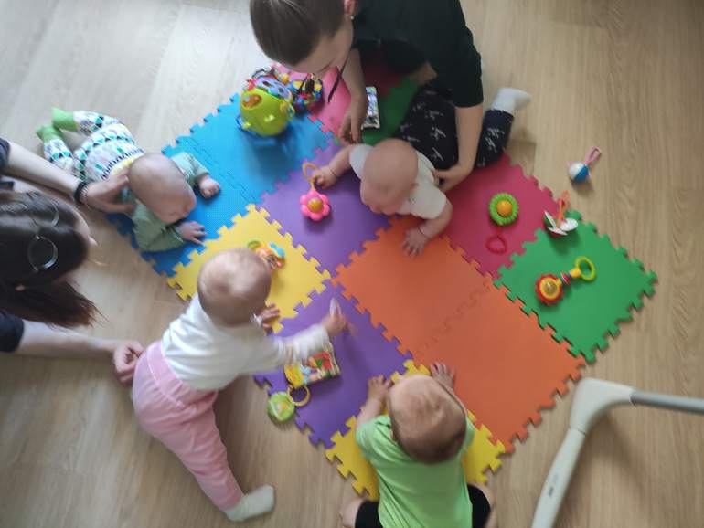Так же месяц выдался насыщенным на общение. Мы ходили на детский праздник и в гости. Мише понравился кукольный театр. А мы с мамами поняли, что много младенцев в одной комнате это реальный мимими-передоз)))