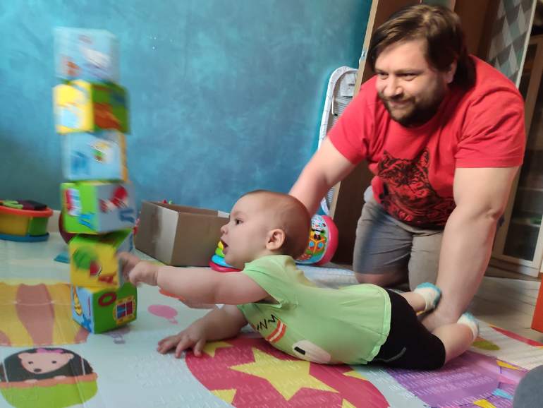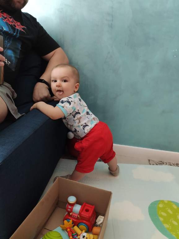 Если с 6 до 8 у нас была тишина с умелками, то к 9 месяцам поперло. Мы пережили адский кризис сна, зато в награду получили: ползанье на четвереньках, сидение и стояние у опоры.