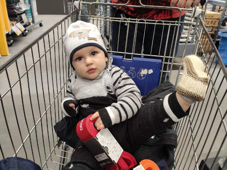 Так же впервые ездил все вместе в Мегу (везде без очереди, это приятно:)) МихСаныч красиво показался в корзинке в Декатлоне:)))
