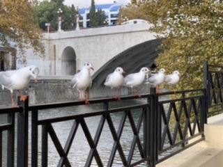 Любит гладить кошек. Очень радуется птицам. Особенно полюбились голуби и чайки