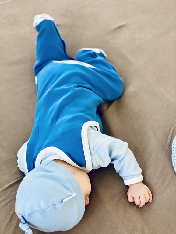 ✍️6. Зато в положении на животике начал делать буквально на днях ножками👣 (почти всегда левой) такие ползающие движения - подгибая их в коленке. И даже как червячок на пару сантиметров продвигается вперед))