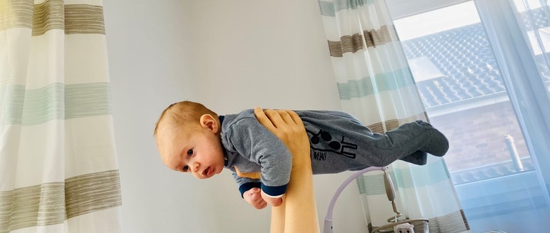 ✍️7. "Лодочка". Еще из двигательных "новинок" забыла вписать про Сашин укрепившийся мышечный тонус - если держать его надо головой на весу под мышками, держит тело полностью параллельно полу. Ручки правда чаще всего не в стороны, как при "самолетике".