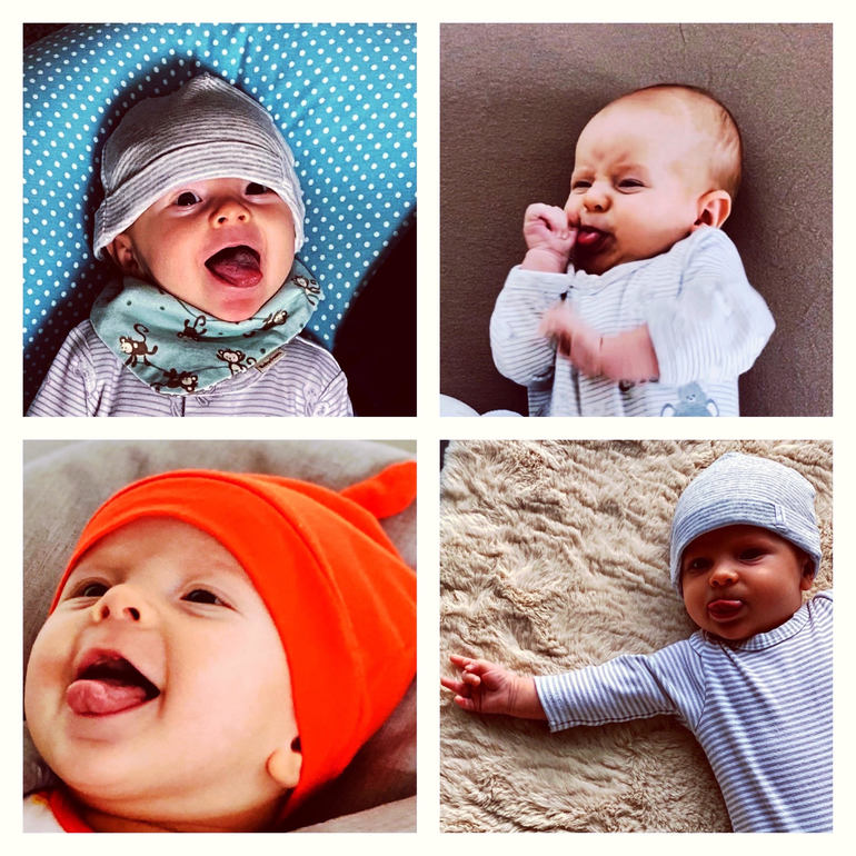 Мы тоже язычок высовываем, видимо тоже мышцу треним 😊😏. И руки во рту любимое дело. Вкусные её наверно 😁😃👍🏼🤗🤗🤗