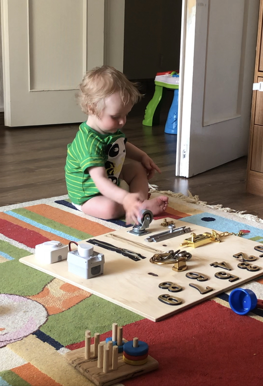 После года-полутора уже много всего было у нас: вкладыши, "кормилки", сортировки (если интересно, в дневнике есть). Бизиборд тоже делали старшей, но не довели до ума. Кстати, надо не забыть достать его и закончить.