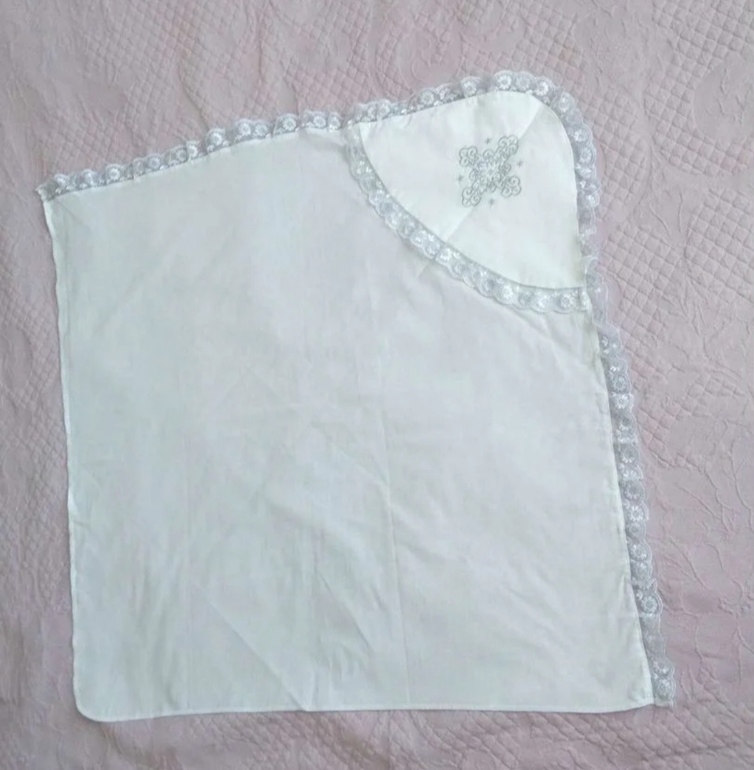 А нам рубашка не пригодилась, брали крестильное полотенце, оно большое и полностью завернули ребенка, тем более в купели его полностью окунают. Полотенце вот такое бренда амаробейби
