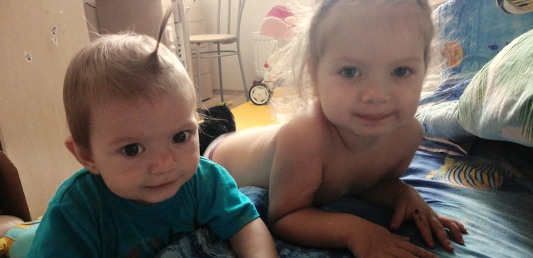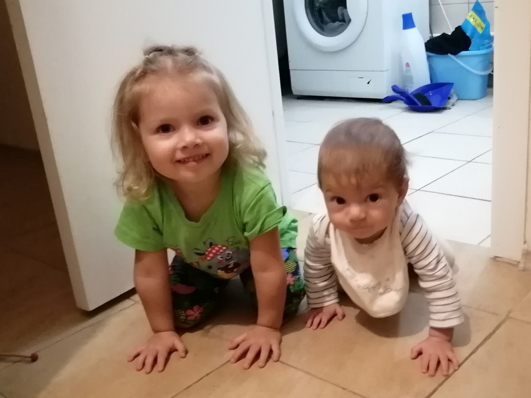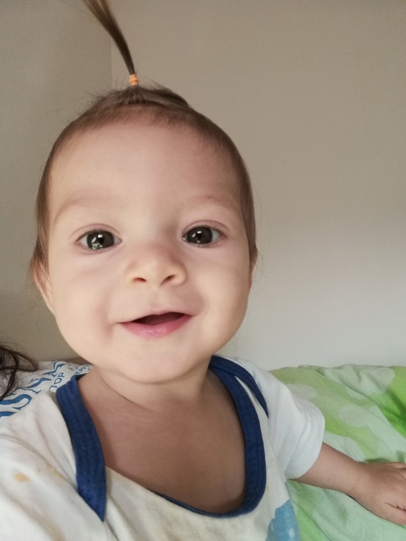Иногда по поводу Вали мысли о том, что она гораздо самостоятельнее была в этом возрасте. Стоит мне выйти из комнаты, Катя за мной с криками ползёт, а Валя вовсю мир исследовала, могла уже и с дивана слезть, да и вообще физически была активнее) Но Катюша старается, уже может встать на пару секунд без опоры, ползает быстро, пальчиками активно хватается за всё подряд.