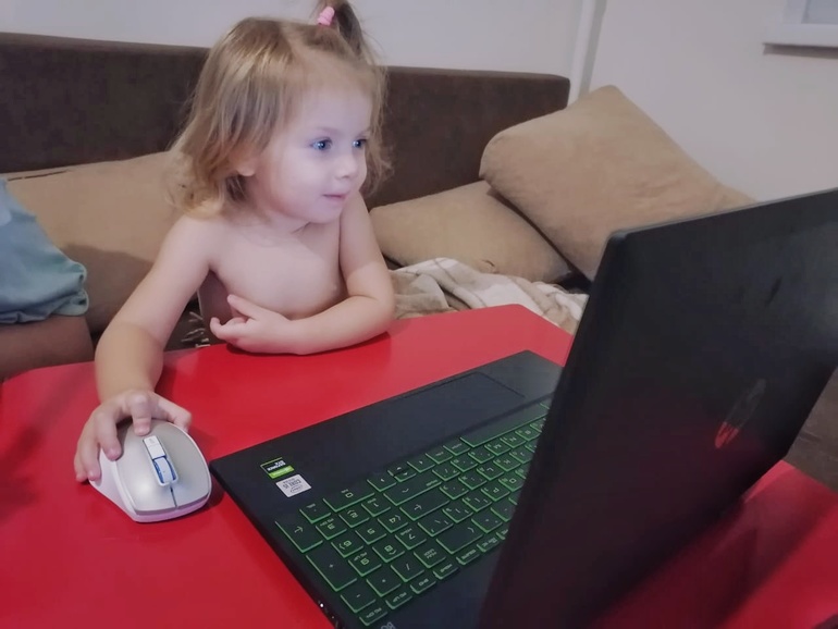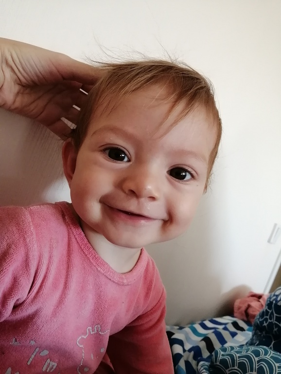 Вылезли два нижних зуба. Первым тут хвасталась, второй почти сразу полез, сейчас затишье. Она уже не так активно трёт дёсна, правда, всё равно всё в рот тянет.