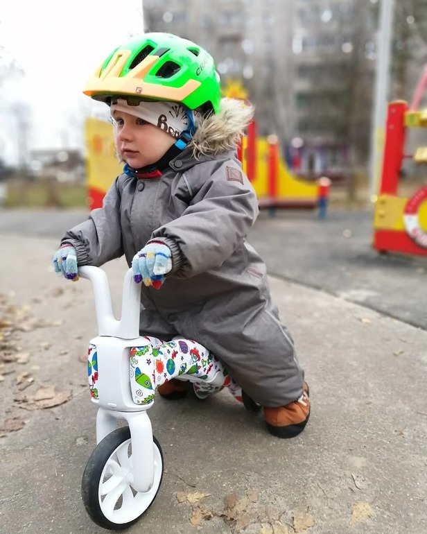 Младшему год, на трёхколёсном беговеле Чиллафиш стал кататься месяцев с 11ти. Сейчас уже очень даже неплохо катается, только поворачивать ещё не научился))