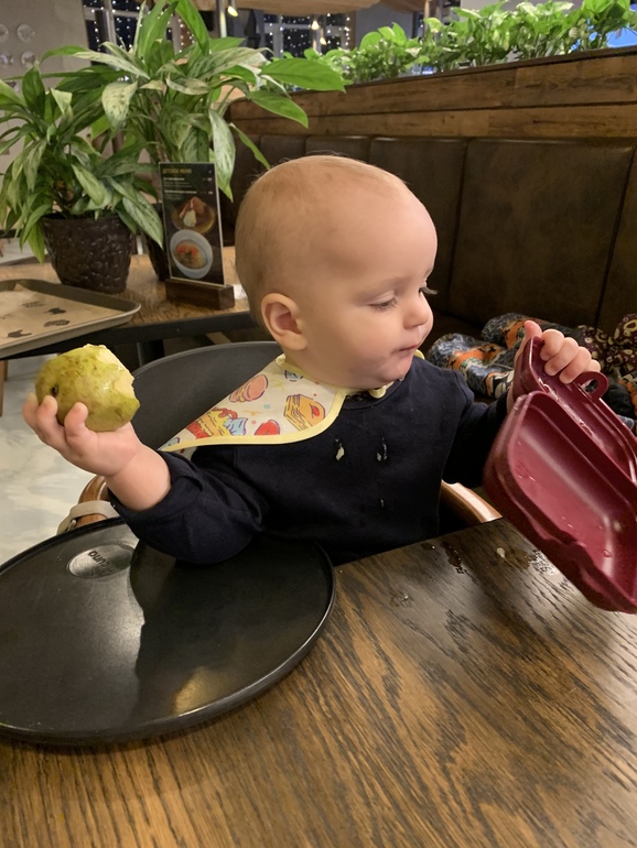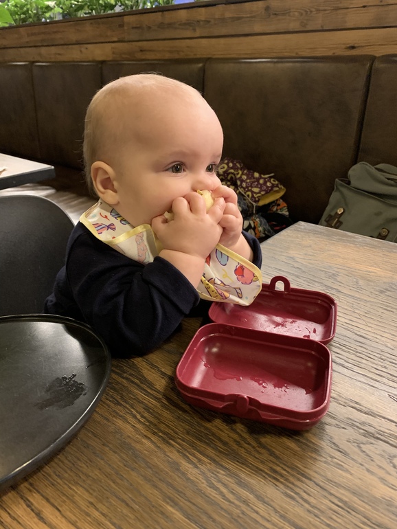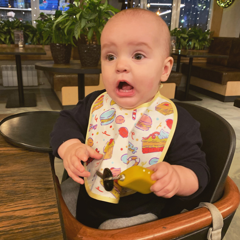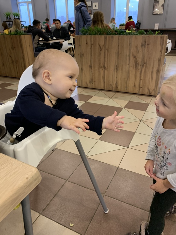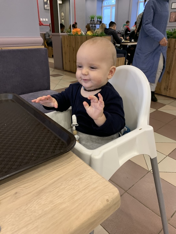 Мы начали ходить в кафешки. Тут главное правило: взять много разной еды с собой для Сереги, либо заказать что-то специально для него. Пока нормально проходит, даже вот девочек кадрить успевает 😍