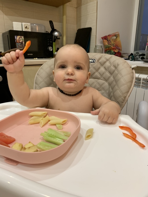 Парень заговорил по просьбе. Из осознанного мамама (это мама то бишь), амамам (есть гони, причём не грудь тут, а еду), бабабаба (это папа 🤣). В остальном тарабарщина.А, ещё вместо «дай» у него «тя» (это реакция, когда что-то вкусное дают или на ручки хотят взять).