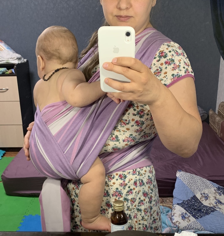 Коляске снова бойкот, так что только слинг 😶 я в очередной раз радуюсь, что один из моих шарфов неплохо так тащит маленького кабанчика, вполне себе терпимо пока по весу. Так что слингокуртка теперь у нас мастхев (носила ее всю зимнюю часть беременности).