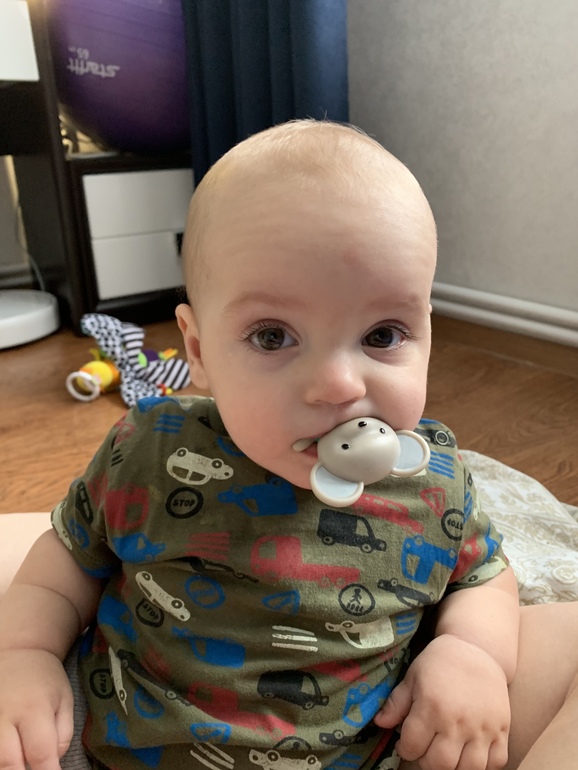 У Сереги уже четыре зуба. То ли реально бусы действуют, то ли что. Но три крайние зуба обнаружили случайно, когда уже вылезли (до бус с первым зубом было ой как тяжко). Два, значит, снизу по центру и два сверху боковые. Папа теперь его Гуффи называет🤪