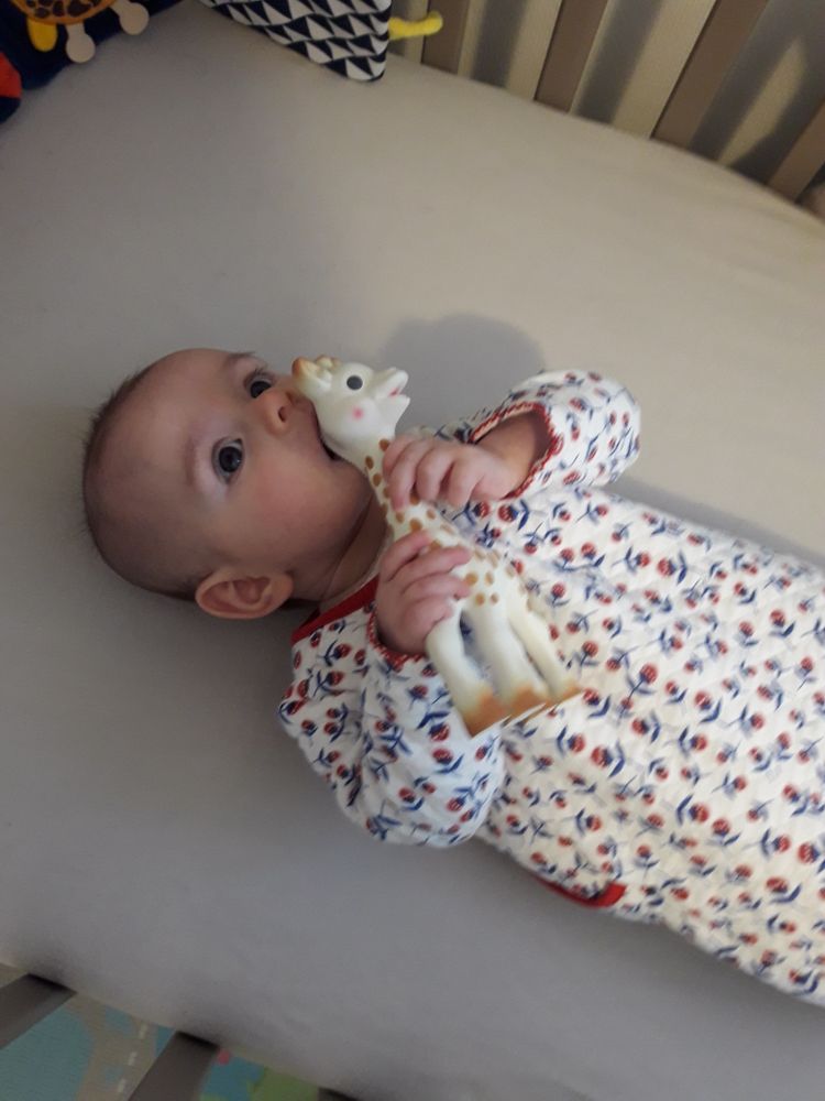 Научилась перекладывать игрушку из одной руки в другую, вообще моторика рук здорово прогрессировала в этом месяце, движения всё четче, все хватче и предметы всё быстрее попадают в цель (в рот).😀 Всё чаще нахожу её в необычных местах, ну не там, где оставляла, адским червячком на спине как-то умудряется передвигаться. Измучила отца гимнастическими выгибаниями и вставаниями в мостик на пеленальном столе. Мать - попытками сесть из положения полулёжа, когда находится на коленях во время еды и нагуливает пищевой интерес.🍽