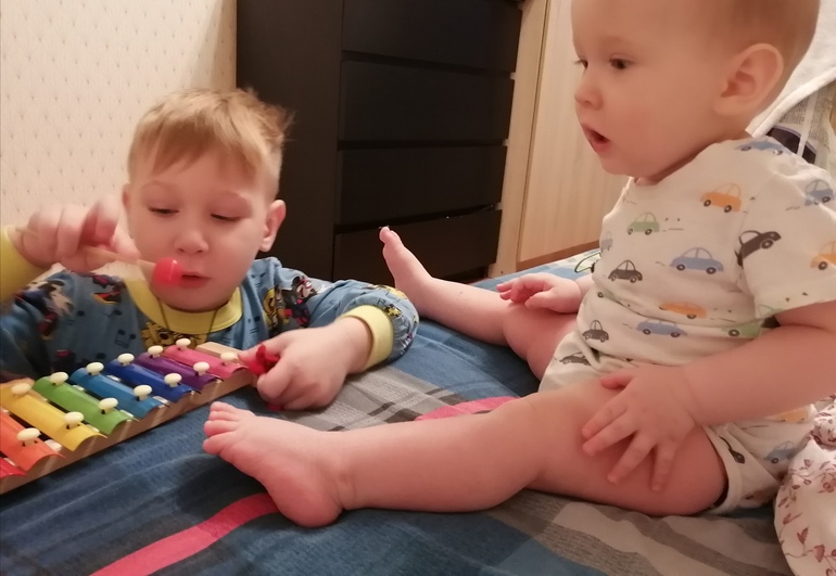 С прикормом более менее. Кашу обожает и творожок. Овощное пюре только тыкву с яблоком или кабачок с яблоком, немного морковь. Все остальное не ест. Из моей тарелки ест картошку. Фруктовое пюре не очень, граммов 40-50 может съесть грушу или яблоко. Так фрукты кусочками даю, иногда ест, иногда плюёт, банан совсем разлюбил. Понравился мандарин. С мясом особые отношения. Белое мясо: кролик, индейка и курица совсем не понравилось. Ест говядину и телятину по настроению. Нравятся домашние пельмени с говяжим фаршем, котлеты из духовки давала. Ну печенье и хлеб любят все дети))) кефир не пьёт, старший наоборот фанат кефира.