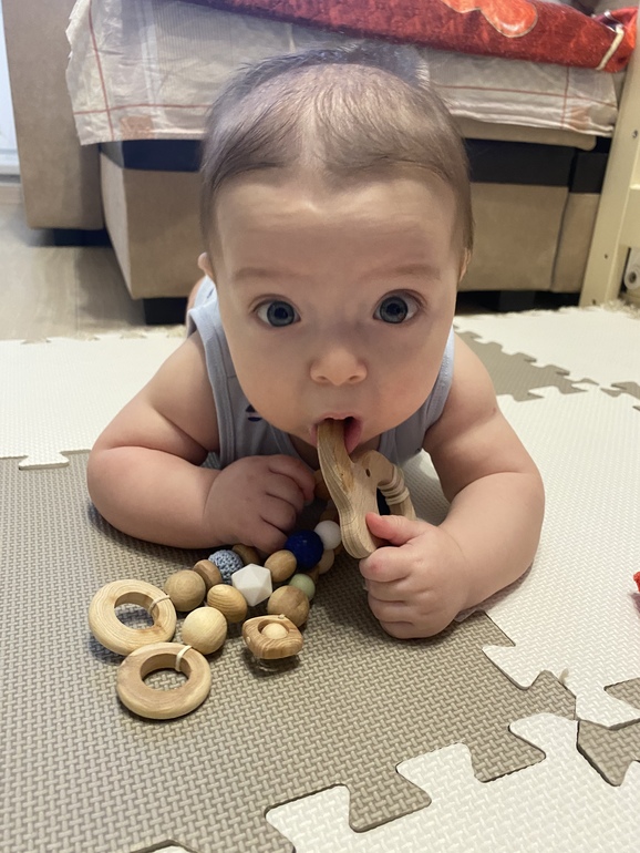 Купила ему ложечки силиконовые, чтоб сам играл ими. Кстати, обычная поварёшка силиконовая - фаворит среди игрушек. Хотяяя... на втором месте после маминого телефона 😅