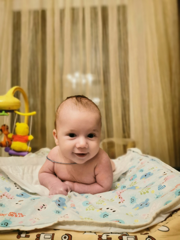 Если в кратце, то радует нас Пирожок бесконечно. Всеобщий любимчик. Последнеи пару ночей спит беспокойно, вероятно, из-за насморка, а может зубы уже издалека начинают беспокоить, или новые умелки на подходе (последние пару ночей в пеленке пытается перевернуться к утру и беспокойно спит после 5.00), а может и все вместе.