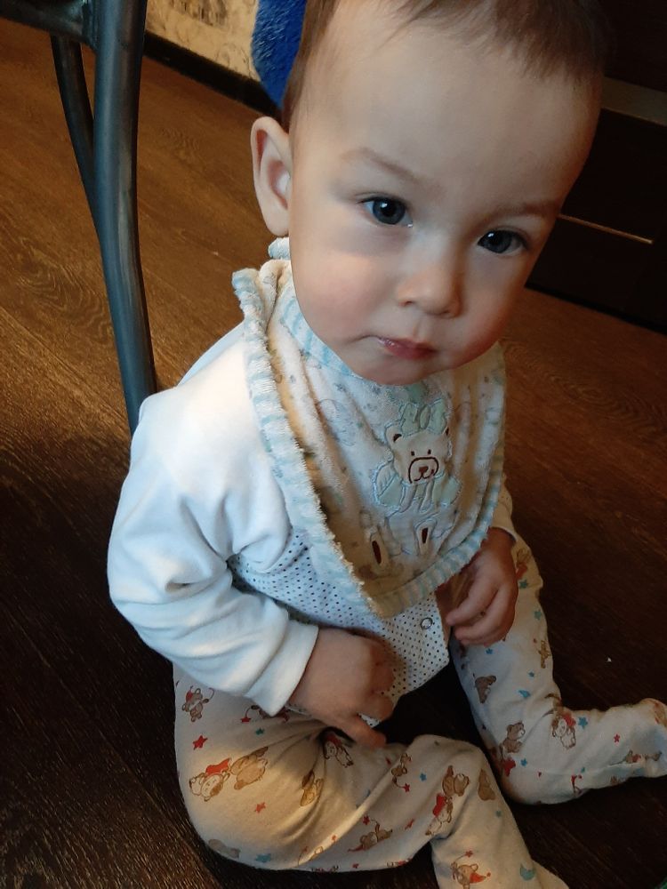 Но очень милый и стеснительный малыш, стоит прийти кому-то малознакомому, он смущается и прячет личико, либо ручками закрывается, или чаще ползёт ко мне, и прячется за моей ногой, в эти моменты его милота просто зашкаливает 😍