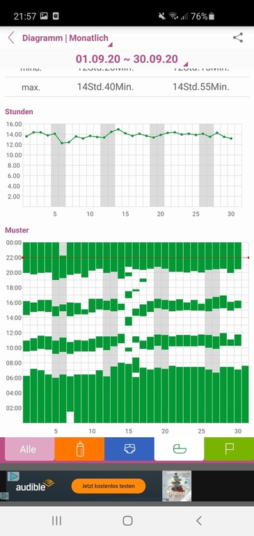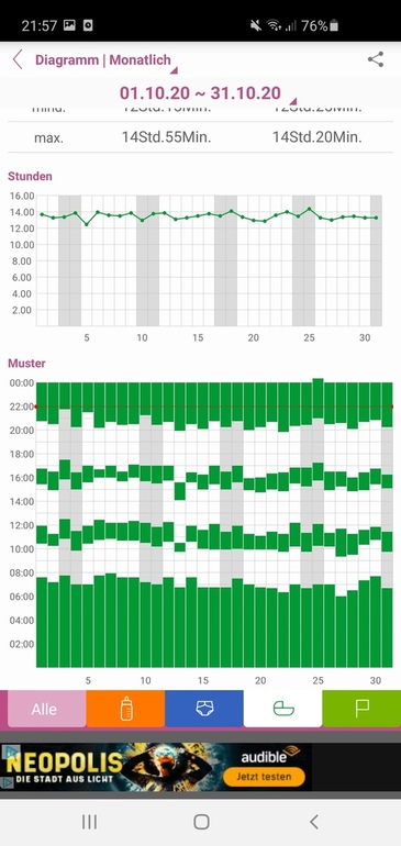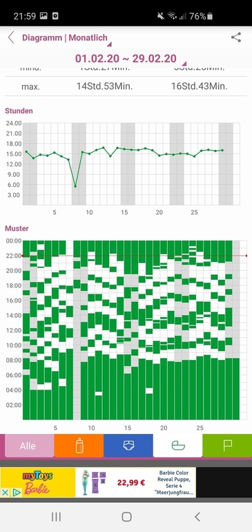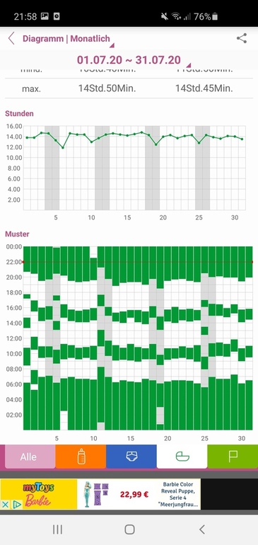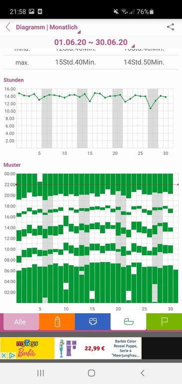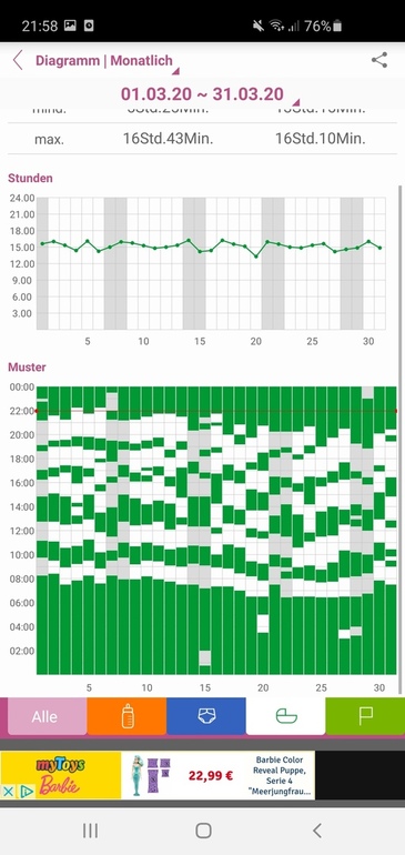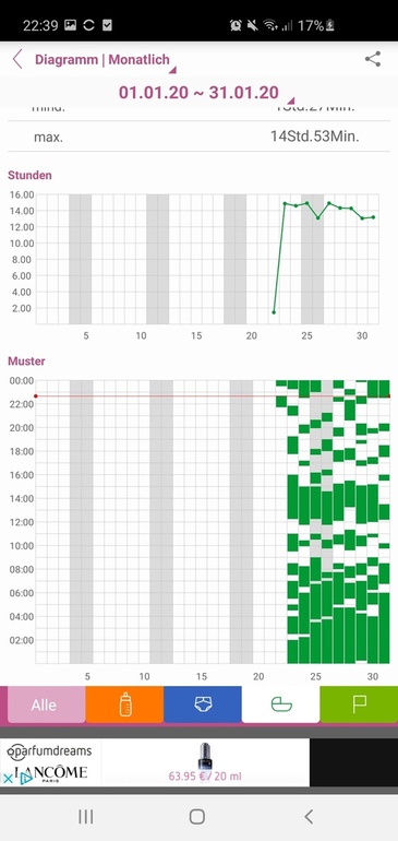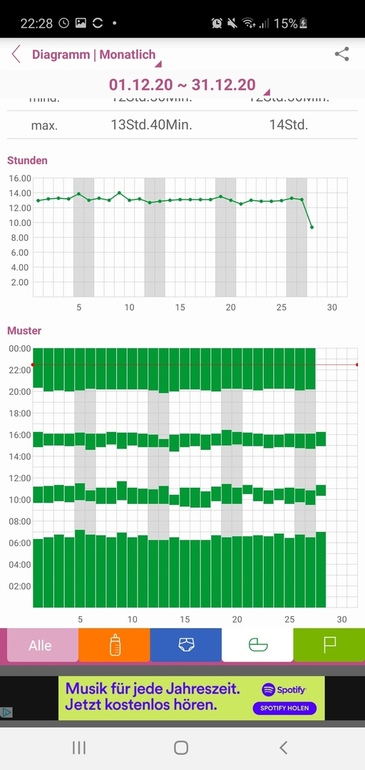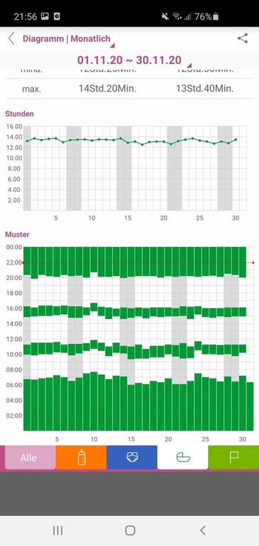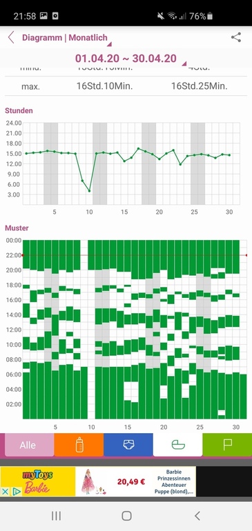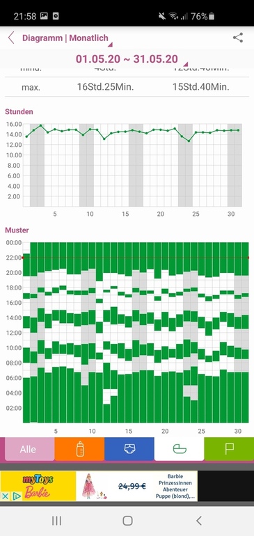 Я напишу кратко то, что происходило с нами в первый год, к каждому месяцу прикреплю скриншот с программы отслеживания сна, по которому видны количество и длина снов, время бодрствования. Может кому интересно будет.