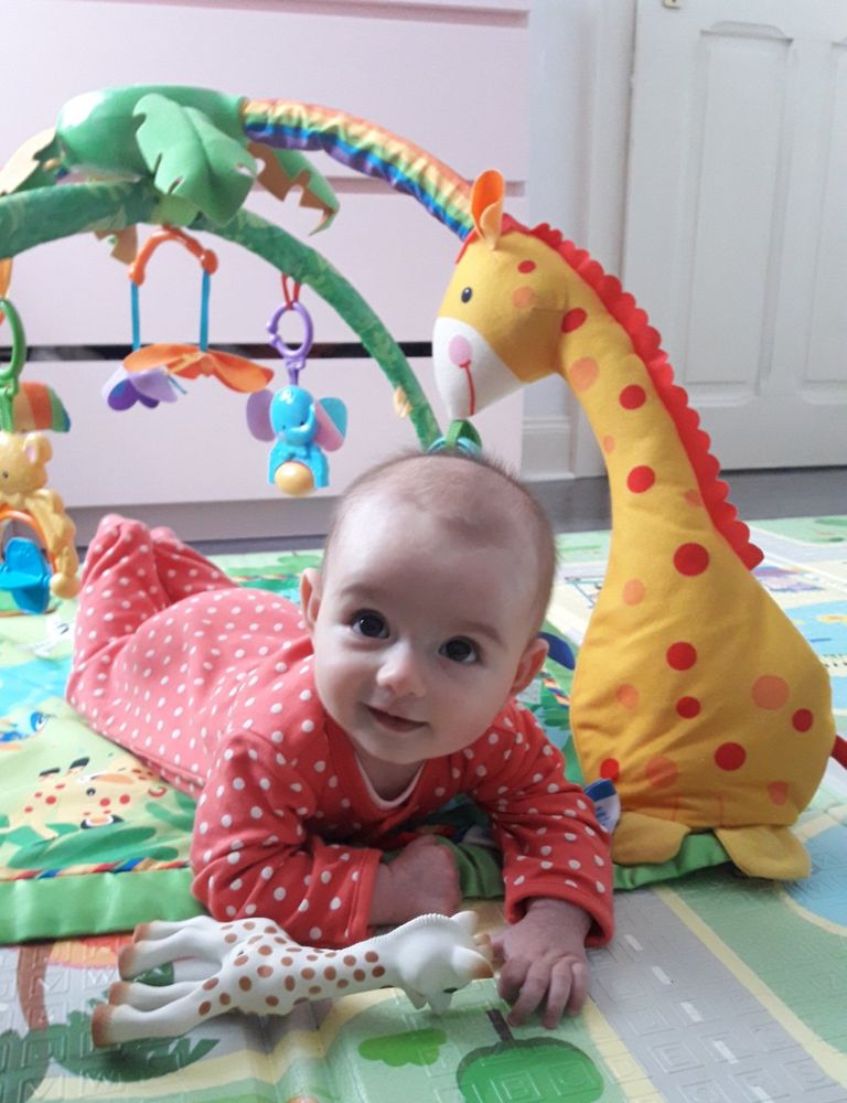 По умелкам пока следующее. По чуть-чуть начинает поворачиваться на бока, но не охотно. Вдруг разучилась переворачиваться с живота на спину, связываю это с бурным ростом и мозг еще не научился управлять новым телом. Вижу, что мышцы спины окрепли, стала не просто лежать на животе, но и играть с игрушками в такой позе, и трогать картинки на коврике. Стала не много удерживаться в положении сидя. Ну и пока ведущие навыки - это мелкая моторика 👋 и гуление👩🎤. Очень проворные руки, всё отбирают у меня, очень богатая "речь". Дочка обожает, когда я держу её за ладошки - успокаивается мигом.