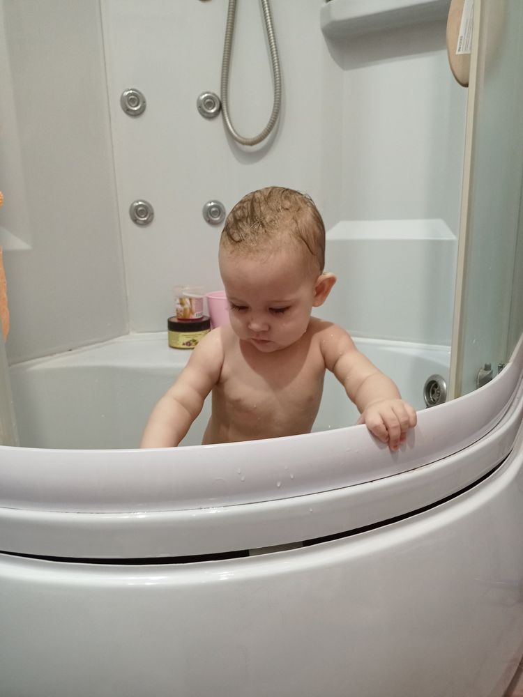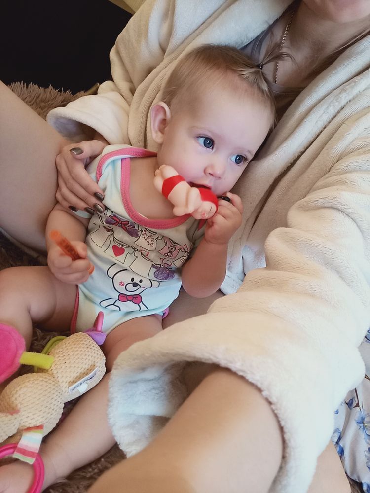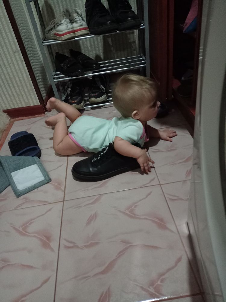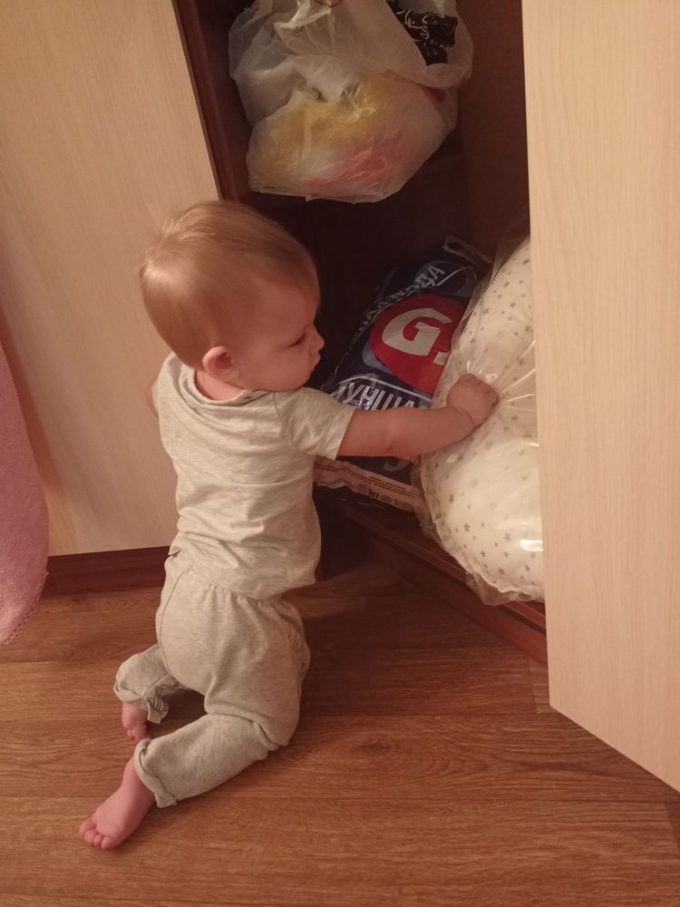 🤸Она активно изучает дом, сама себе хозяйка, ползает , все смотрит. Но в большинстве случаев это мамин хвостик. А самое любимое занятие это когда я лежу на полу, кровати, а она просто перелазит через меня туда и обратно. Так обычно и проводим весь день .😄