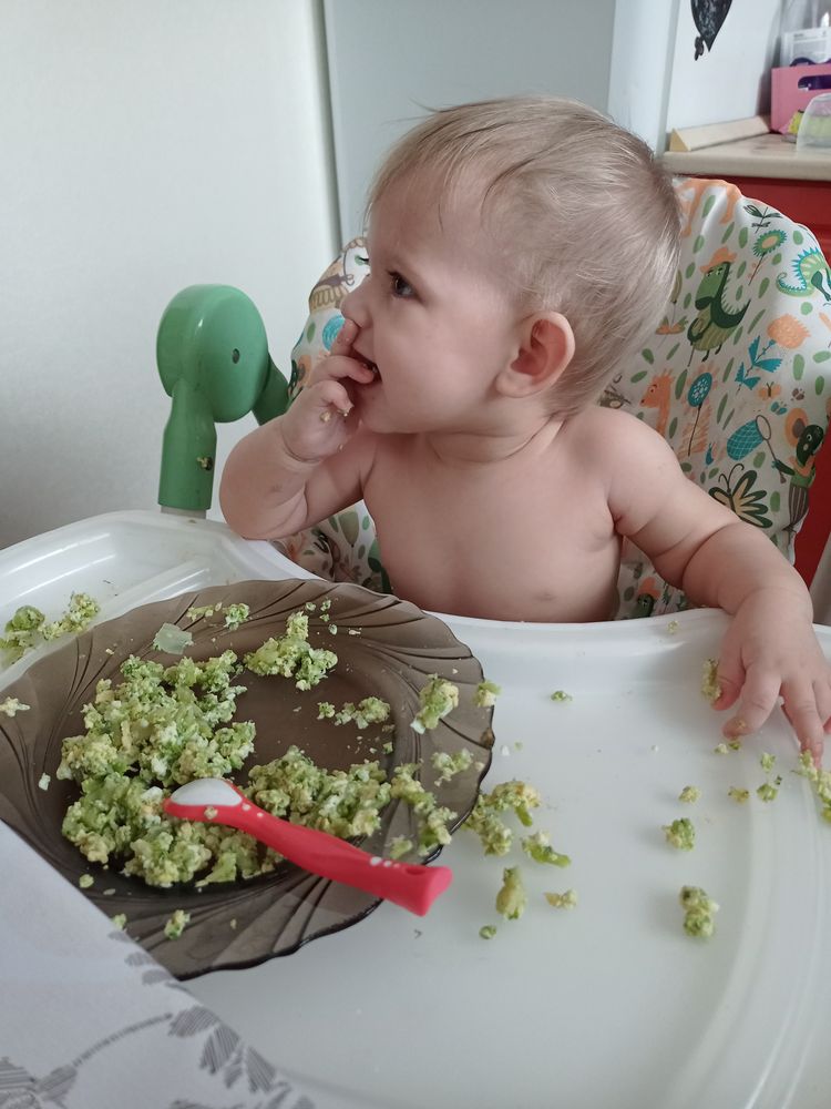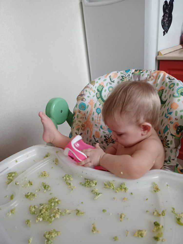 🥗 Из продуктов попробовали всё, что по возрасту. Последние дни мало кушает, наверное из за зубов, которые ещё не вылезли, но уже всех замучали. Больше нравится есть кусочками, но и пюре делаю иногда сама, иногда покупаю.