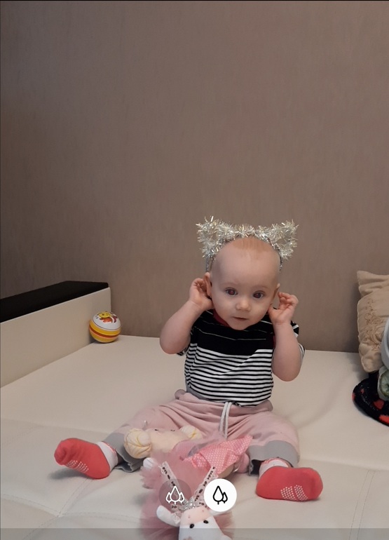 Рост 79, вес все так же 7 кг. Порой на меня родственники нагоняют жути, что вес не прибавляется и я начитаю крутить эту мысль, потом смотрю на свою фею и успокаиваюсь, откуда будет браться вес если батарейка энерджайзер самазарядная у нас в попе))) такой шилопоп и секунды не сидит на месте. Сейчас даже сфоткать не могу, пишу видео, а потом скриншочу )))