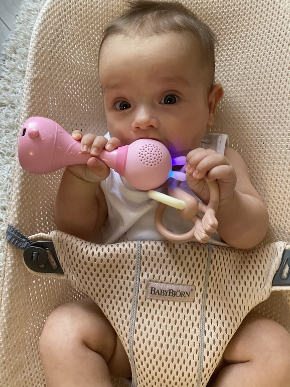 Игрушки разные очень любит, но есть любимая которой уже 2 месяца не изменяет( джойстик от fisher price)