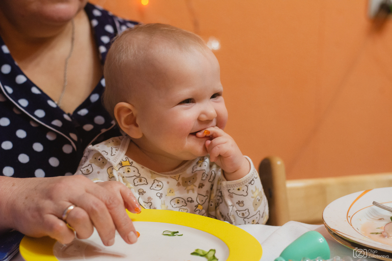 Мы скачком перешли от этапа осторожного прикармливания и микропорций-рисинок к тому, что Милада просто не даёт поесть кому-то, если он не будет делиться. Котлеты уминает обеими руками, макароны, овощи любые, рыбу - только подкладывай на стол, всё уйдёт в топку))) При этом объем порций по-прежнему небольшой.