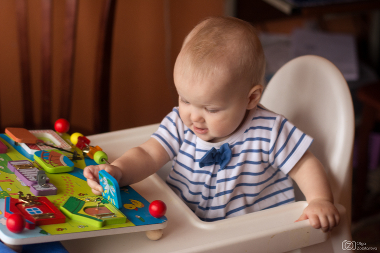 Освоила Бизиборд мелкий: дверцы "кто где живет". Открывает, смотрит, разговаривает с животными. Надо скорей доделать наш большой бизиборд.
