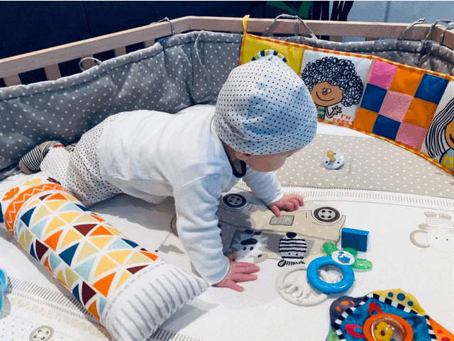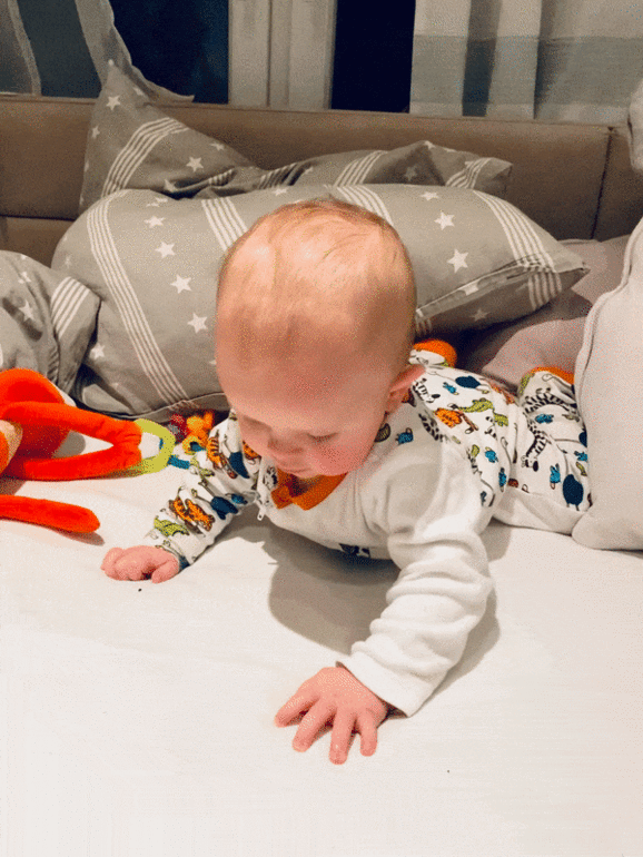✅ 27.01. - начал раскачиваться на постели, опираясь ногами сзади о подушку. На полностью плоской поверхности и без задней опоры пока так не умеет, но это видимо скоро придет😊
