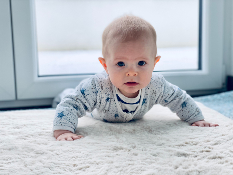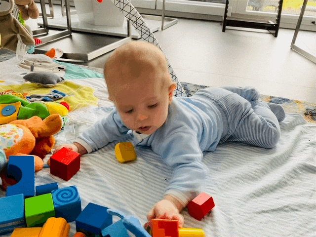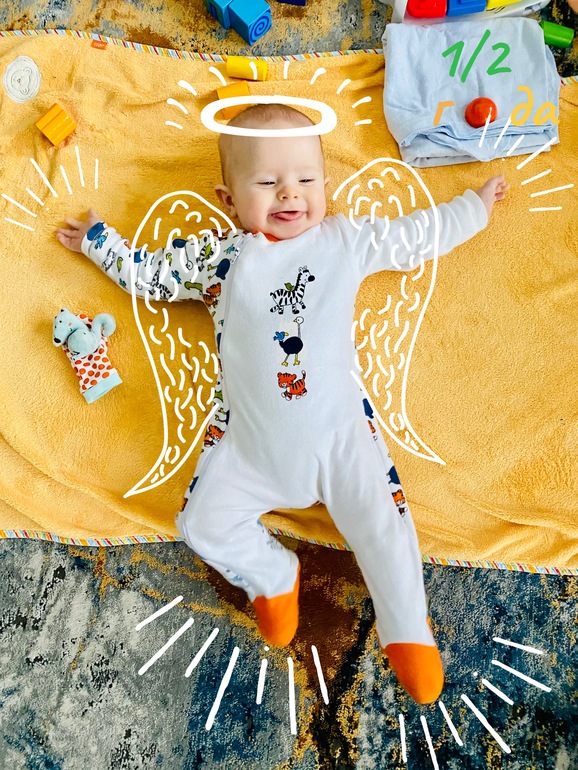 Тим ползает только за хорошим стимулом типа коробки, папиных очков или маминого телефона) Ползает смешно - то прыгает лягушкой, то подтягивается на руках вперёд, то как на велосипеде гребёт ножками, на пузе не любит, все норовит встать. Два нижних зуба вырастил - один прям 31.12 - безболезненно, второй ближе к 6 месяцам в середине января, но уже с нурофеном. И теперь вся верхняя челюсть набухла, боюююсь😬