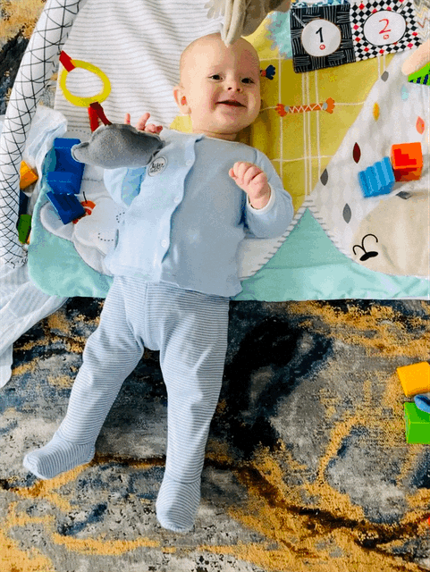 ✅ 18.01. - исторически последний раз, когда играл с висящими игрушками на мобиле, лежа на спине. Теперь наши игры все на животе идут) Сейчас мобиль снимаем и переделываем в «просто коврик»😊.