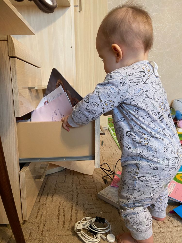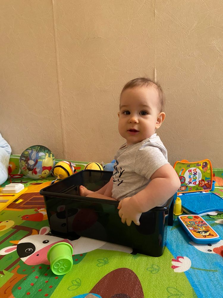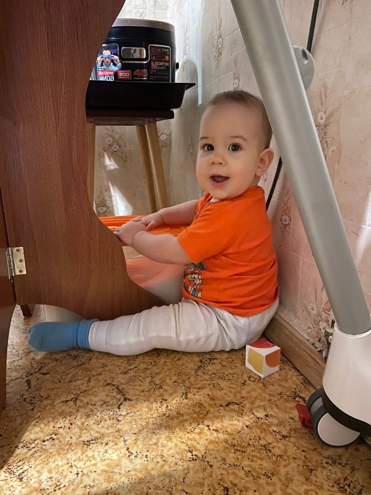 Интеллектуальное развитие конечно у нас наверное так себе 😅 пирамидку не собирает, а только ломает, в ладушки не играет, пока не машет 👋 изучает мир глазами, руками и на вкус) научился открывать столы и ящики