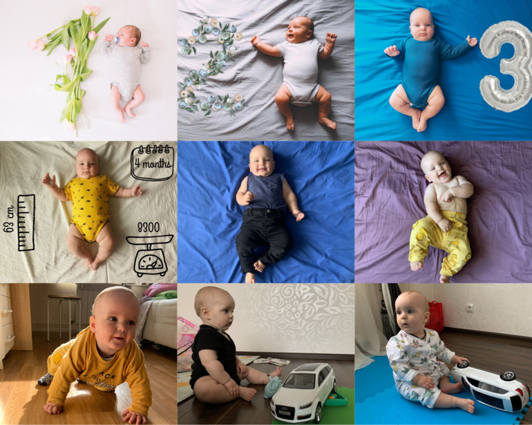 Сделала вчера коллаж по месяцам и чуть не плакала. Так грустно мне стало, как быстро он растёт. Правда, столько ещё впереди у нас, но все равно грустно.