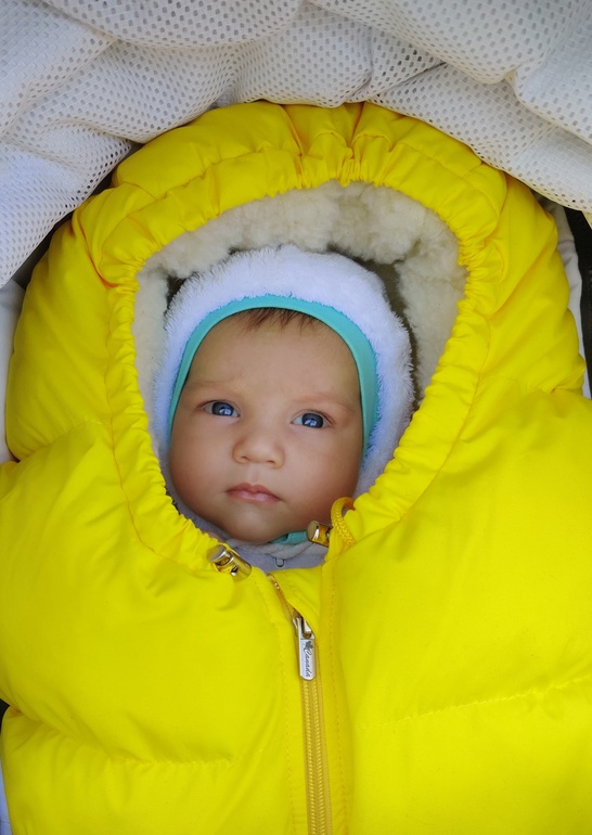 Какая интересная желтая штука. Это такой кокон? Он с мехом и в него вы на прогулку кладёте ребёнка?Какого размера эта штука и как она называется? Я впервые вижу. Но делаю похоже с комбезами. Один по размеру одеваю не сильно тёплый, а второй намного большего размера и потеплее. И там руки не вкладываю в руки.