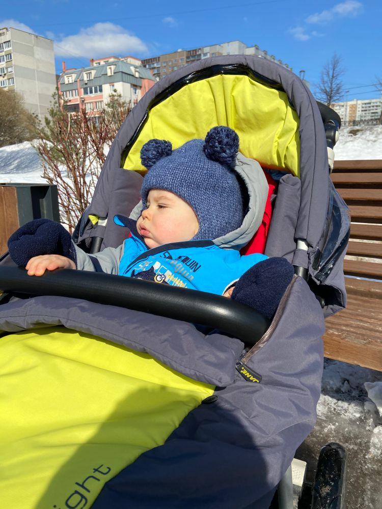 Гуляем пока что на сон, любит спать что бы прохладно было. В апреле, когда уже потеплеет, переобуемся в ботиночки и будем совмещать активные прогулки+сон в коляске. Предполагаю что мои двухчасовые прогулки растянутся до трёхчасовых 😬 Либо поменяем свой график- на улице топать ножками, потом дома спать.
