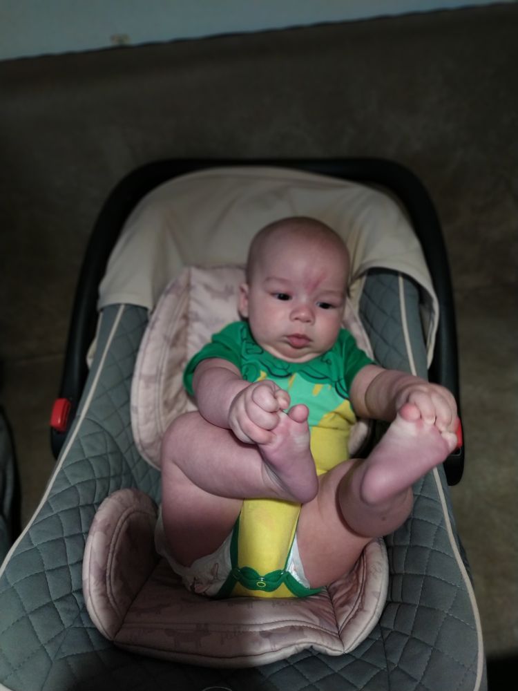 Остальное какие-то заготовки к будущим умениям: пытается встать на четвереньки, если положить грудью на возвышенность, упирается на руки и встаёт на ноги, буквально на днях стал присаживаться в позу русалки.