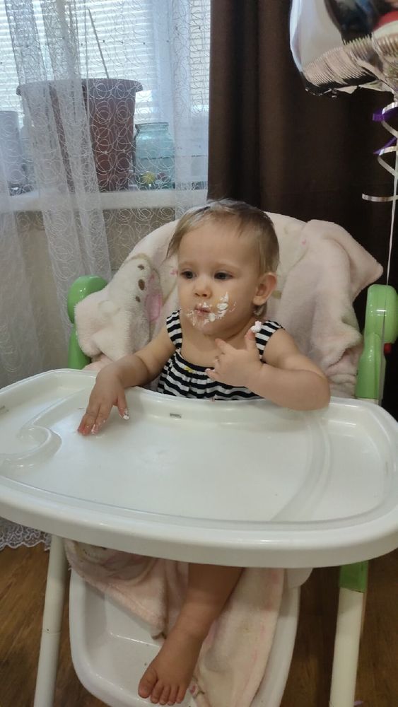 🎊Др отметили дома с родителями нашими с мужем. Марьяна попробовала торт и салат самостоятельно из папиной тарелки. 😄