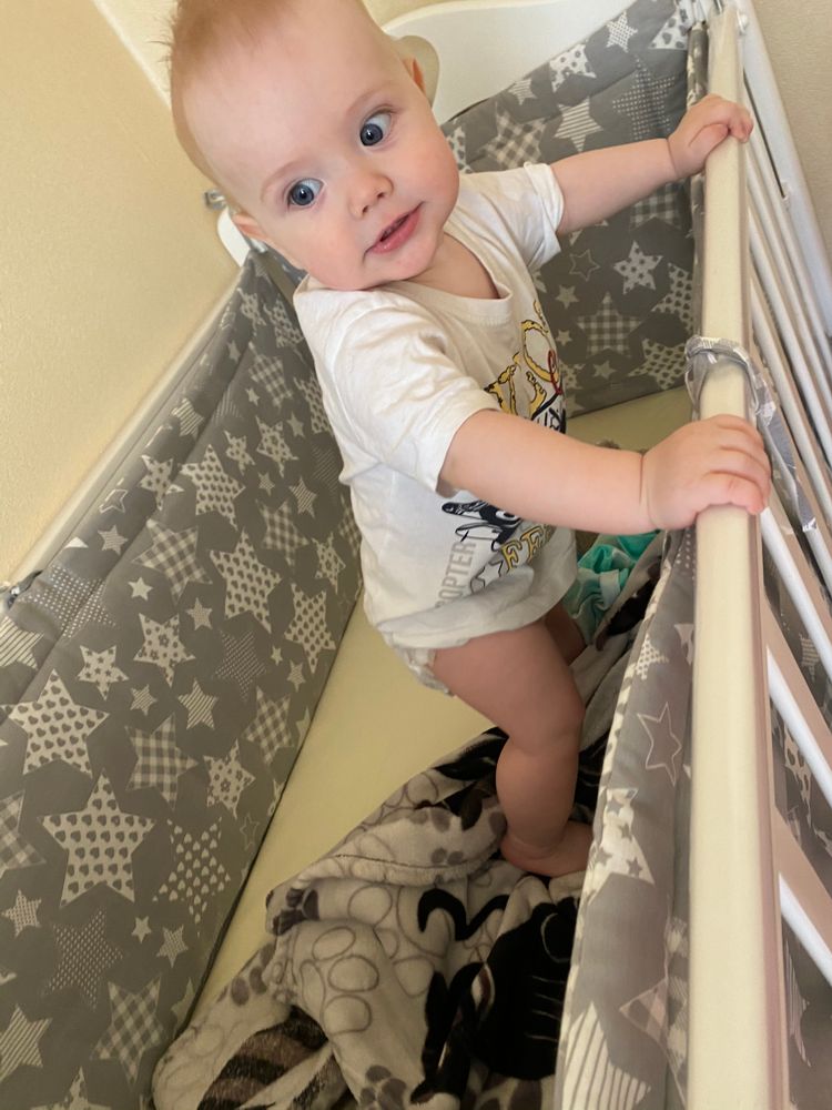 В этом месяце у нас было первое падение с дивана, ну он больше скатился с него, даже не с высоты собственного роста. Даже шишки не было. Но все равно переживали, даже в травме побывали, где успокоили, но на учёт поставили.