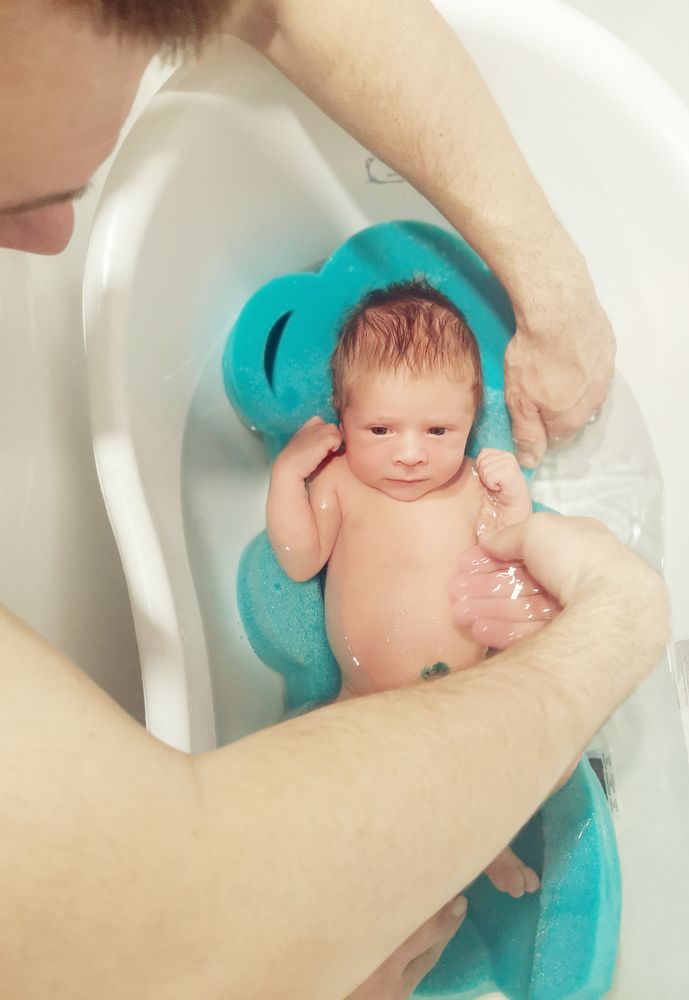 Купаться не любит, купаемся в маленькой ванночке, на мягкой губке, головку держу. Максимум 5-6 мин. Потом начинает плакать.