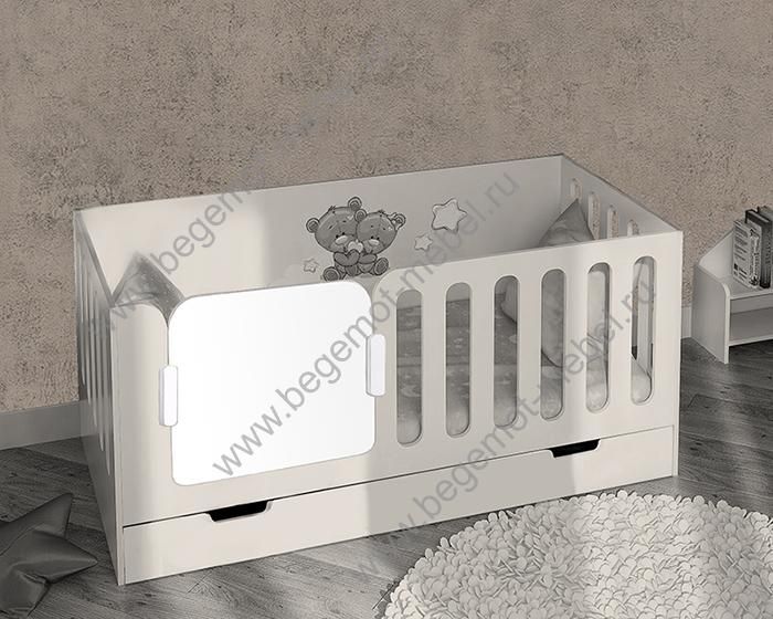 homa, вот такого типа, это первый вариант. Закрытая, высота бортов 65 см. Открывается калитка, её можно не делать. Борт с калиткой можно полностью убрать и останется обычная кровать для ребёнка постарше.