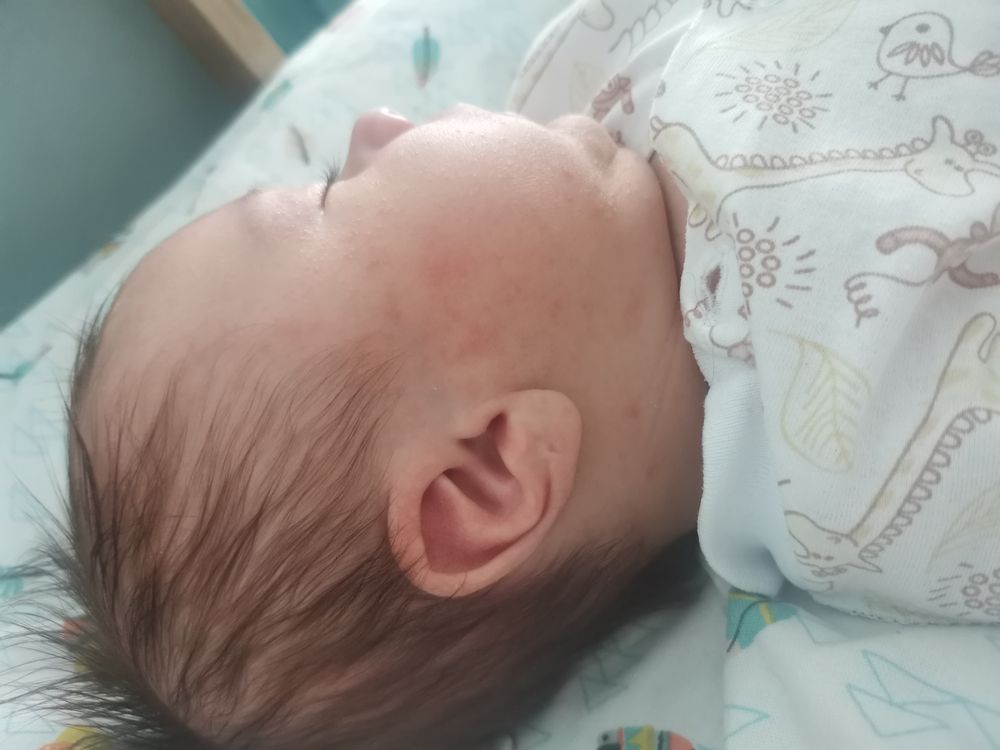 Потом из-за этого лицо красное и прыщики(они были до этого) и спит плохо, просыпается. Аллергию врач исключила, сказала "ребёнок цветёт". Не могу фото добавить, позже. Маленькие пятна беленькие, когда расчешит, то уже краснеют. Как буд-то его что-то раздражает или он ещё руками не может контролировать?