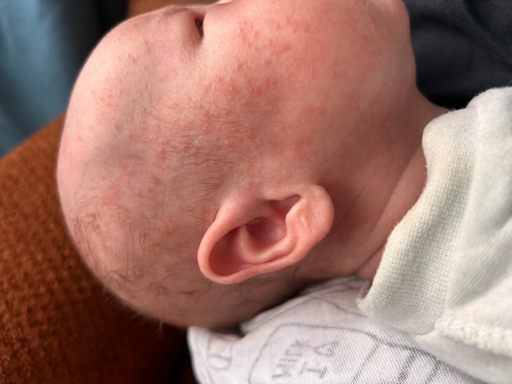 вызывали педиатора ,сначала сказали потница ,но прописали капли от аллергии ,на всякий случай ,бред конечно уже